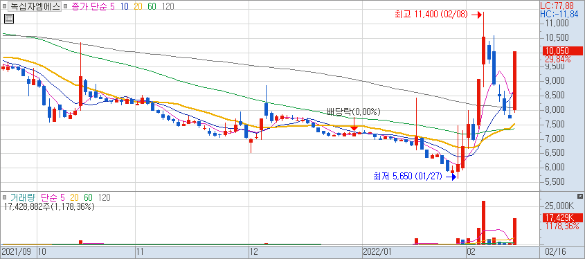 오늘 코로나 일일 확진자 9만명이 넘으면서 자가진단키트 관련주인 녹십자엠에스가 상한가에 들어감.