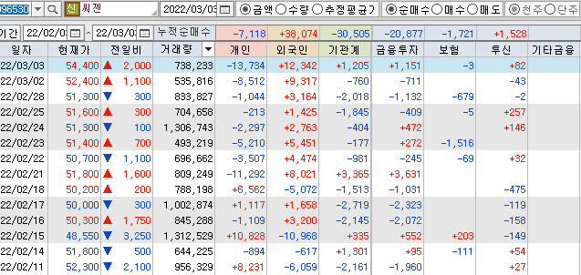 2/21~3/3까지 440억 정도의 외인 수급이 들어옴.