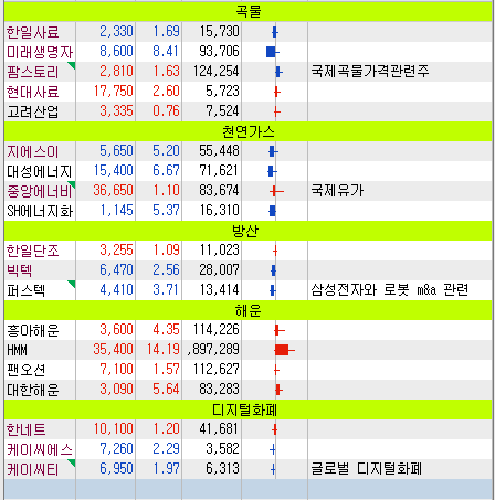 전쟁이 계속되면서 전쟁관련주, 방산, 원유, 곡물, 천연가스 등