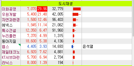 건설관련주들이 11일(금)에 첫 상승을 함. 약간의 조정기간을 거치고 재차 상승이 나올 가능성이 커보임