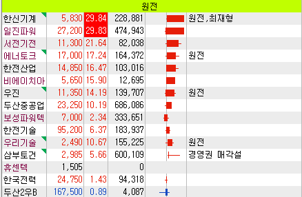 원전 관련주들이 연일 상승중